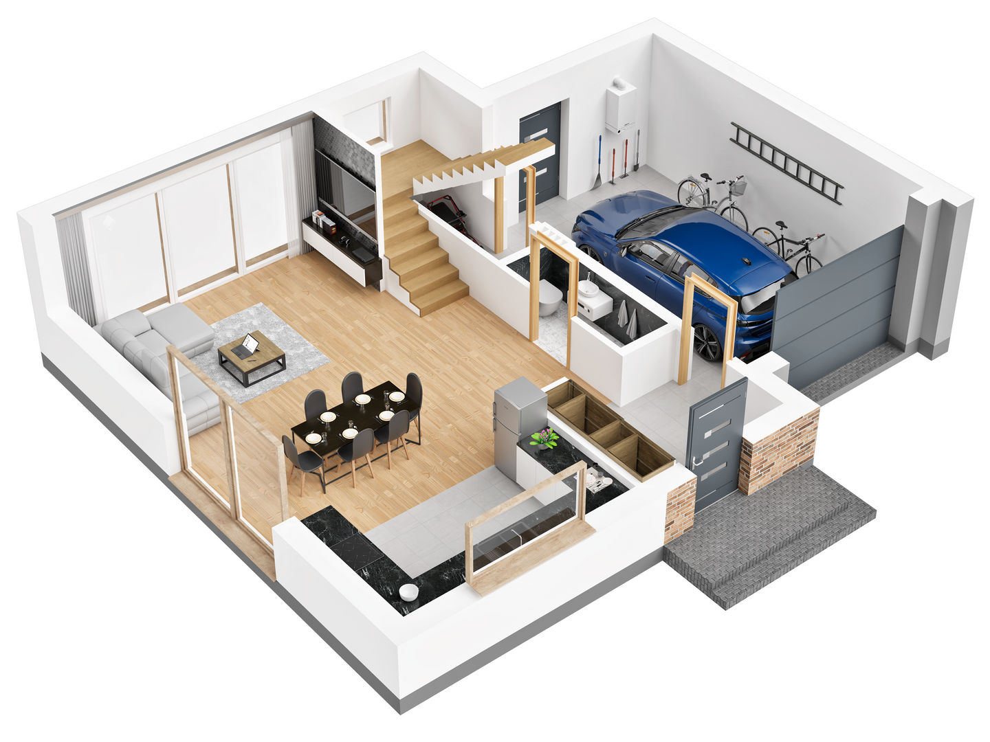Nasz nowoczesny bliźniak oraz otaczający go teren został zaprojektowany tak, aby każda część budynku stanowiła osobną, prywatną strefę, budynki stykają się ze sobą podwójną ścianą.