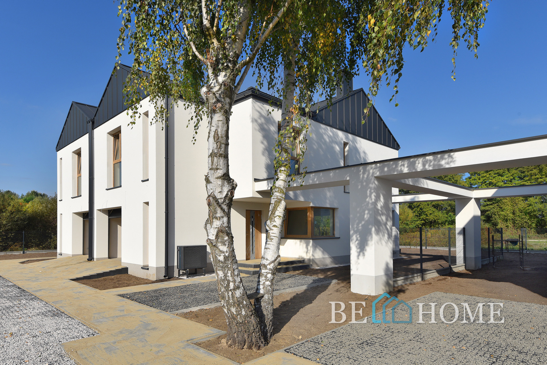 Budynek w zabudowie bliźniaczej z garażem jednostanowiskowym, wykonany w tradycyjnej technologii o wysokich parametrach cieplnych, które gwarantują niskie koszty utrzymania. Architektura domu to wyjątkowe połączenie nowoczesności, funkcjonalności oraz komfortu użytkowania. Priorytetem podczas budowy była wysoka jakość wykonania z zastosowaniem najlepszych materiałów. Dom oraz otaczający go teren został zaprojektowany tak, aby każda część budynku stanowiła osobną, prywatną strefę. Dzięki zastosowaniu dużych okien, zarówno w salonie jak i w pokojach na piętrze, wnętrze jest rewelacyjnie doświetlone co dodatkowo potęguje poczucie przestrzeni. Brak skosów na piętrze umożliwia pełne wykorzystanie powierzchni podłóg. Połączenie super nowoczesnej bryły z bardzo wysoką jakością wykonania pozwoliło stworzyć nieruchomość, dla szczególnie wymagającego Klienta.